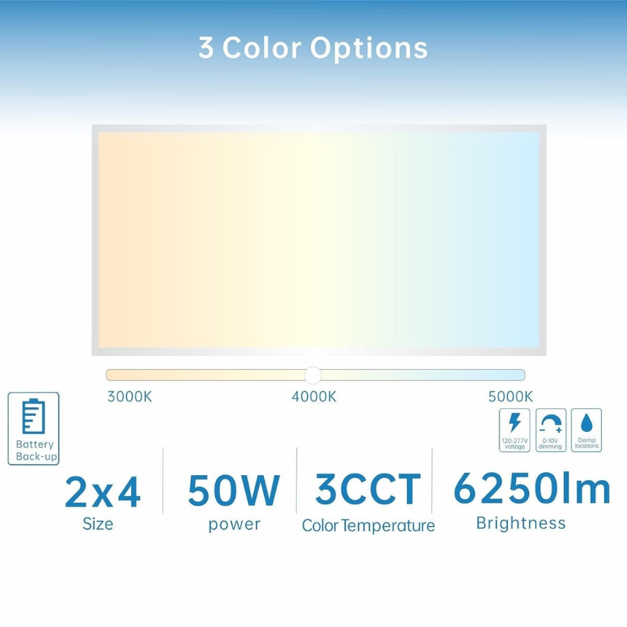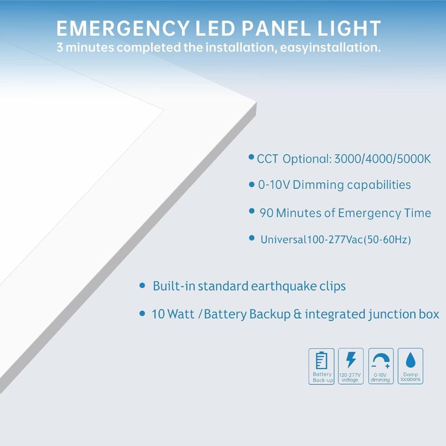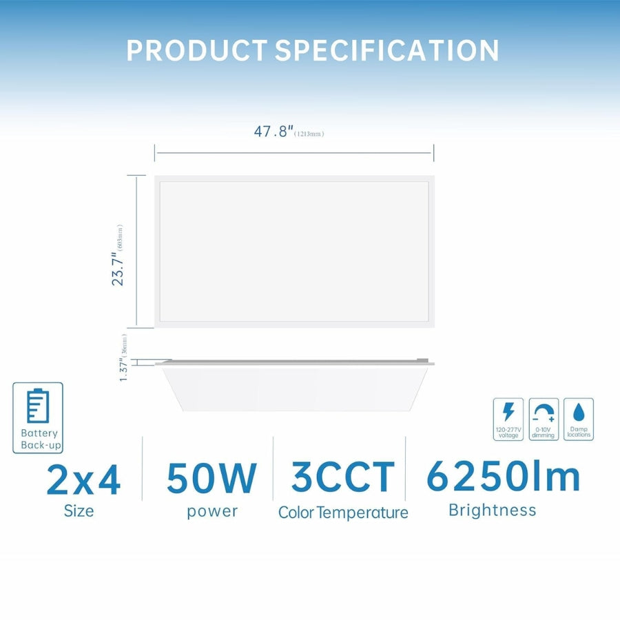 | Model Type | 2x4 FT LED Flat Panel Light with Emergency Backup |