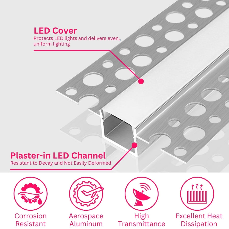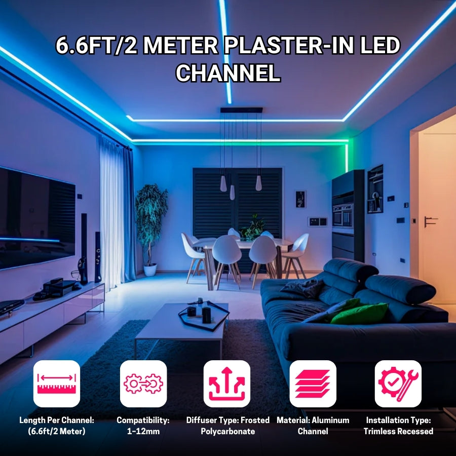 It allows LED strip lights to be mounted flush into drywall, creating a clean, modern, edge-free appearance.