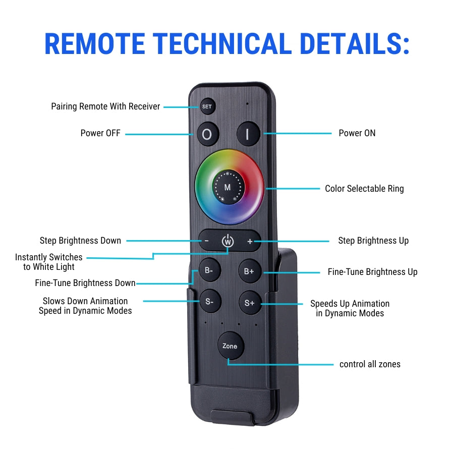RF Remote – 2.4GHz RF remote included for simple wireless control.